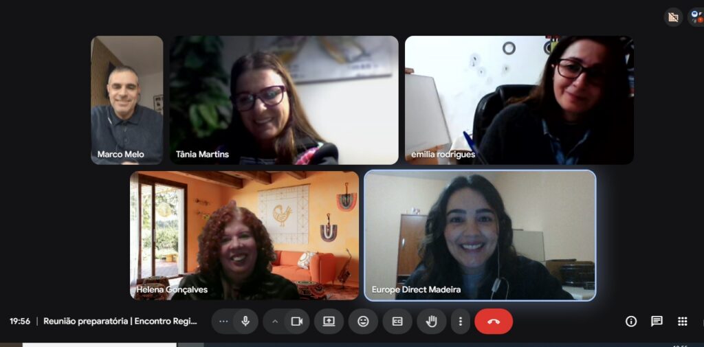 Esta reunião reuniu a equipa do Europe Direct Madeira e as professoras coordenadoras do projeto Escola Embaixadora do Parlamento Europeu da Escola Secundária Francisco Franco, Escola Básica e Secundária de Machico, Escola Dr. Eduardo Brazão de Castro, Escola Profissional Cristóvão Colombo e Escola da APEL.